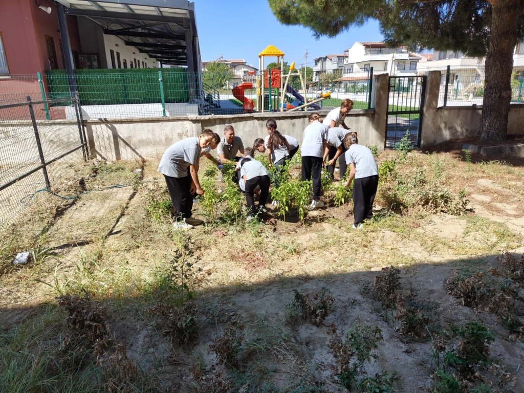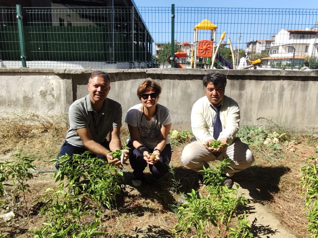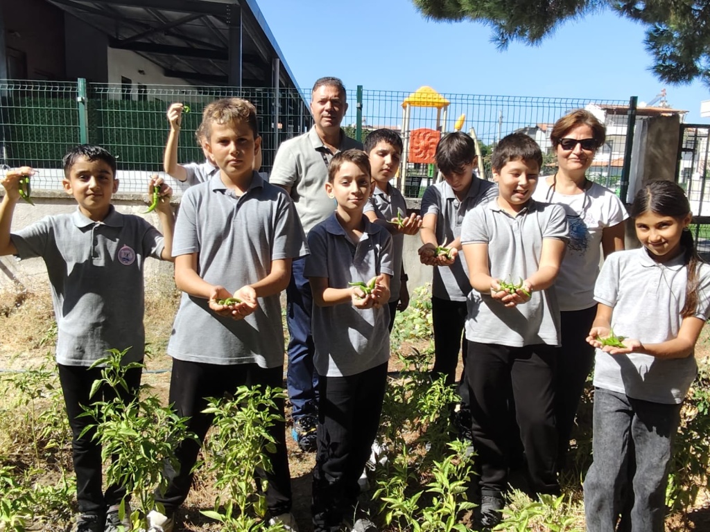 2024/202 5Eğitim-öğretim yılında başvurduğumuz "Enerji Dostu Mavi Yeşil Okul Etiketi " projesi kapsamında Nisan ayında toprağın ekime hazır hale getirilmesi ,toprağın sürülmesi, otların temizlenmesi gerçekleştirilmiş ve yaz ayı boyunca hasat devam etmiş olup bugün itibariyle son hasat gerçekleştirilmiştir. Proje yürütücüsü Özgür Aras ve Selma Eren öğretmenlerimiz öğrencilerimize verdikleri eğitimlerle sebzelerin hangi iklim şartlarında hangi mevsimde yetiştiğine dair bilgilendirme yaptılar. İyi tarım etkinliklerine edinilen tecrübe ile yeni sebzelerin ekimine 2025-2026 eğitim öğretim yılında da devam edilecektir.